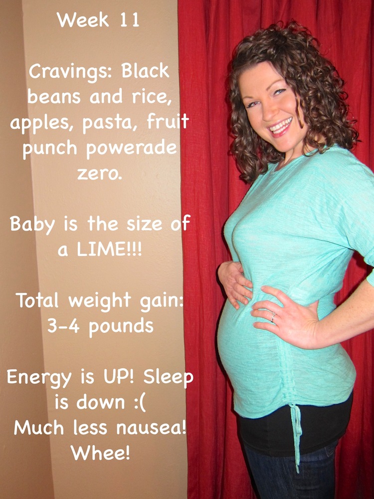 So….here’s my Week 11 pic. I craved black beans and rice like crazy this week. I ate it several days in a row. I would make brown rice and layer it with black beans, sautéed veggies, cheese, salsa, and guacamole. So yummy. My own little version of the Golden Temple Stack. If you haven’t had it…you should go by and get one. It’s so yummy. I also craved asian food and we got Surin takeout a couple of nights. I also did stir-fry at home. No “bad” cravings this week. Still eating lots of fruit and some little pieces of a sugar free chocolate bar. I also tried to make sugar free jello pudding with almond milk but it would never thicken – apparently it doesn’t work with non-dairy milk. boo on that. I’m also outgrowing my clothes. I have 2 pairs of maternity pants at the moment and I’m wearing them over and over. Haha!