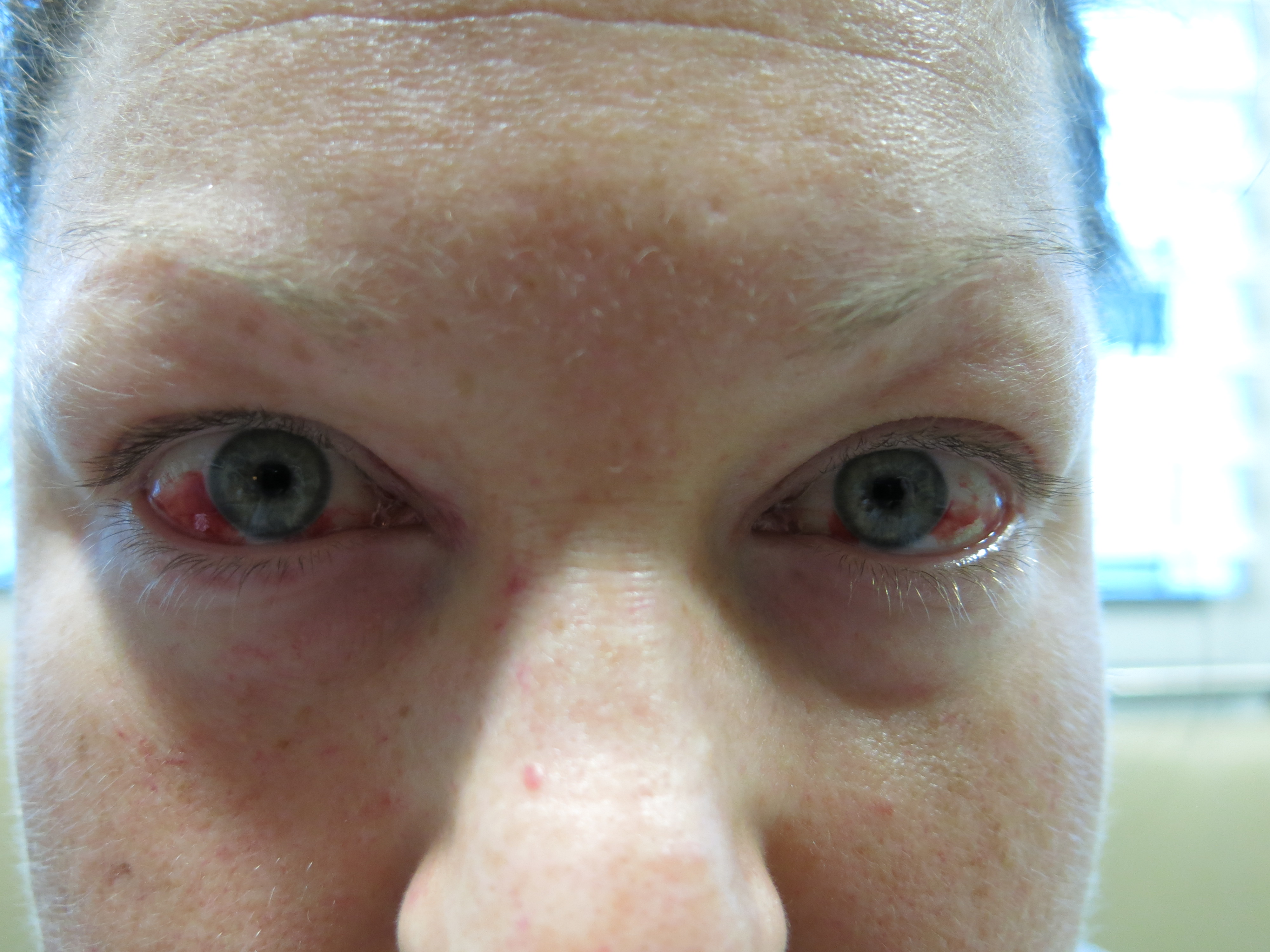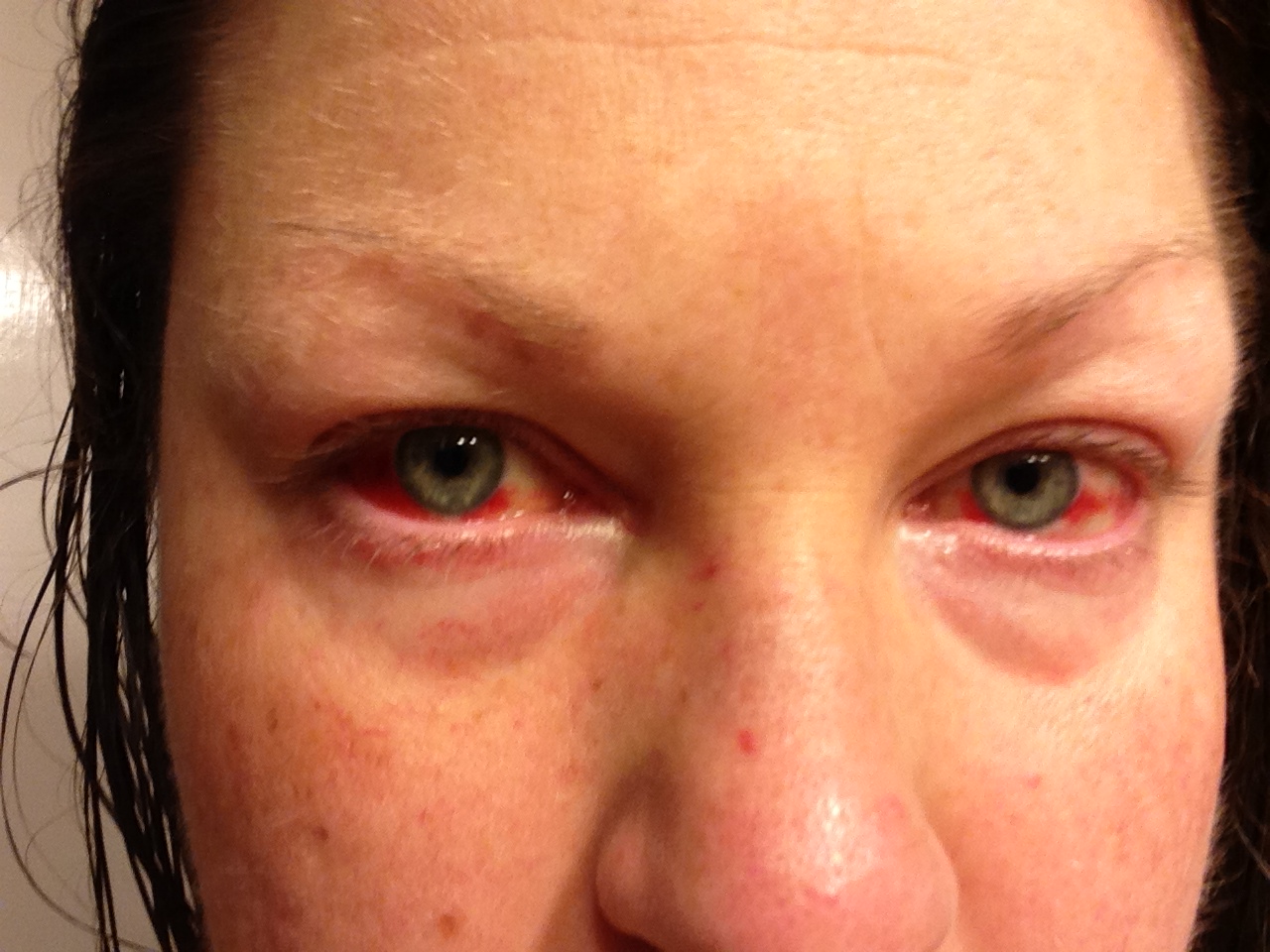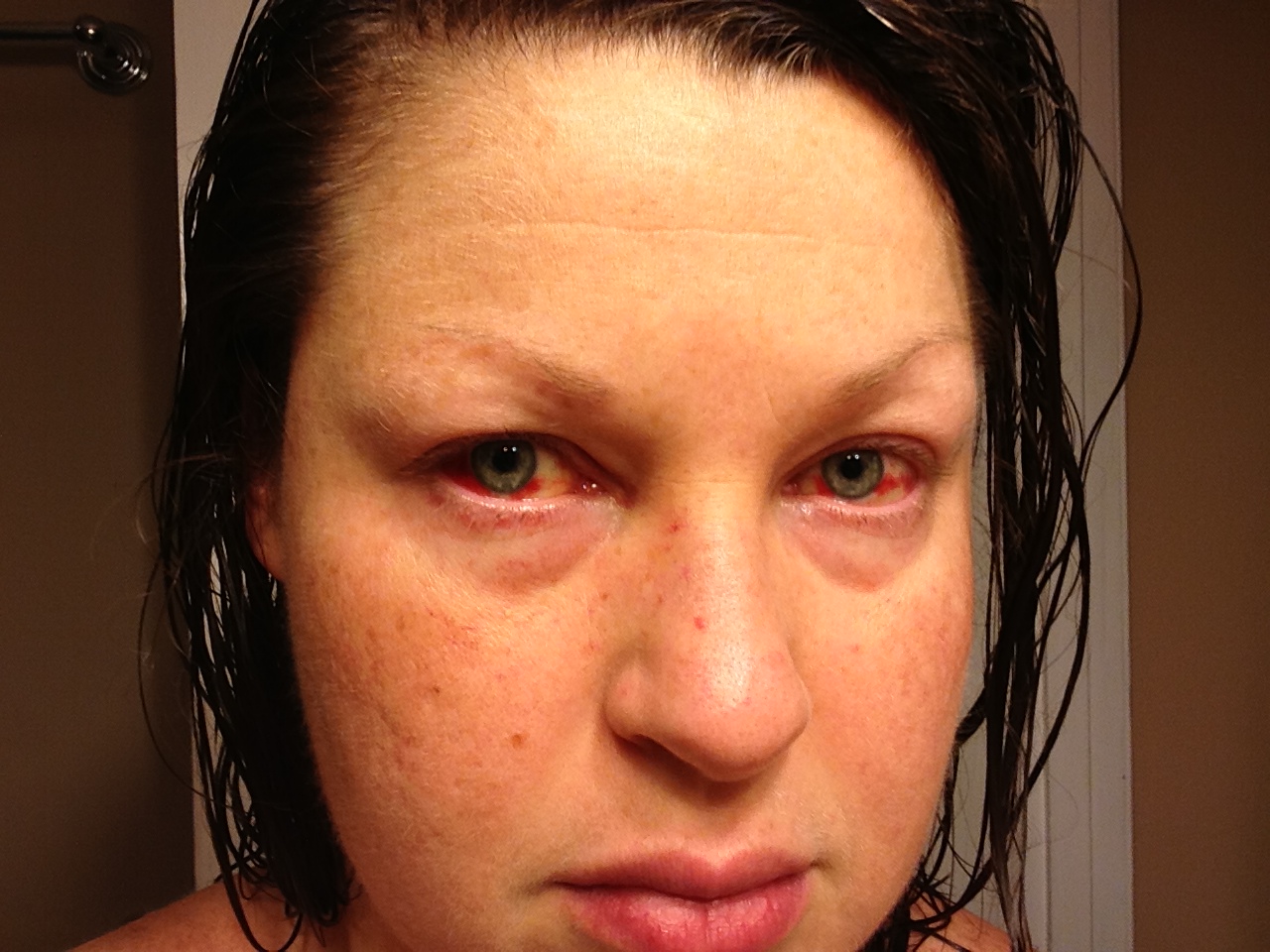 The pushing did a number on my face though. It was just so much pressure. They would tell me to take a big breath in and hold it and push as hard as I could. It felt like my head was going to explode. My face swelled SO bad and my eyes bugged out of my head – all within the 1-2 hours of pushing. I didn’t even look like myself. As soon as it was over I was crying and I went to wipe my eyes and my face felt weird. My eyes and cheeks felt bigger. I kept asking the nurses what was wrong with me and they kept saying I looked fine but when I got in my room and looked in the mirror I couldn’t believe it – I looked like a completely different person. Over the next few days as the swelling around my eyes went down, the white parts filled with blood. It still isn’t gone and I’m now 20 days out from delivery. This is why there have been no photos of me. Here are a few of my face and eyes in delivery and in the days after. I’m kinda embarrassed to put these up but hell it doesn’t even look like me so who cares.