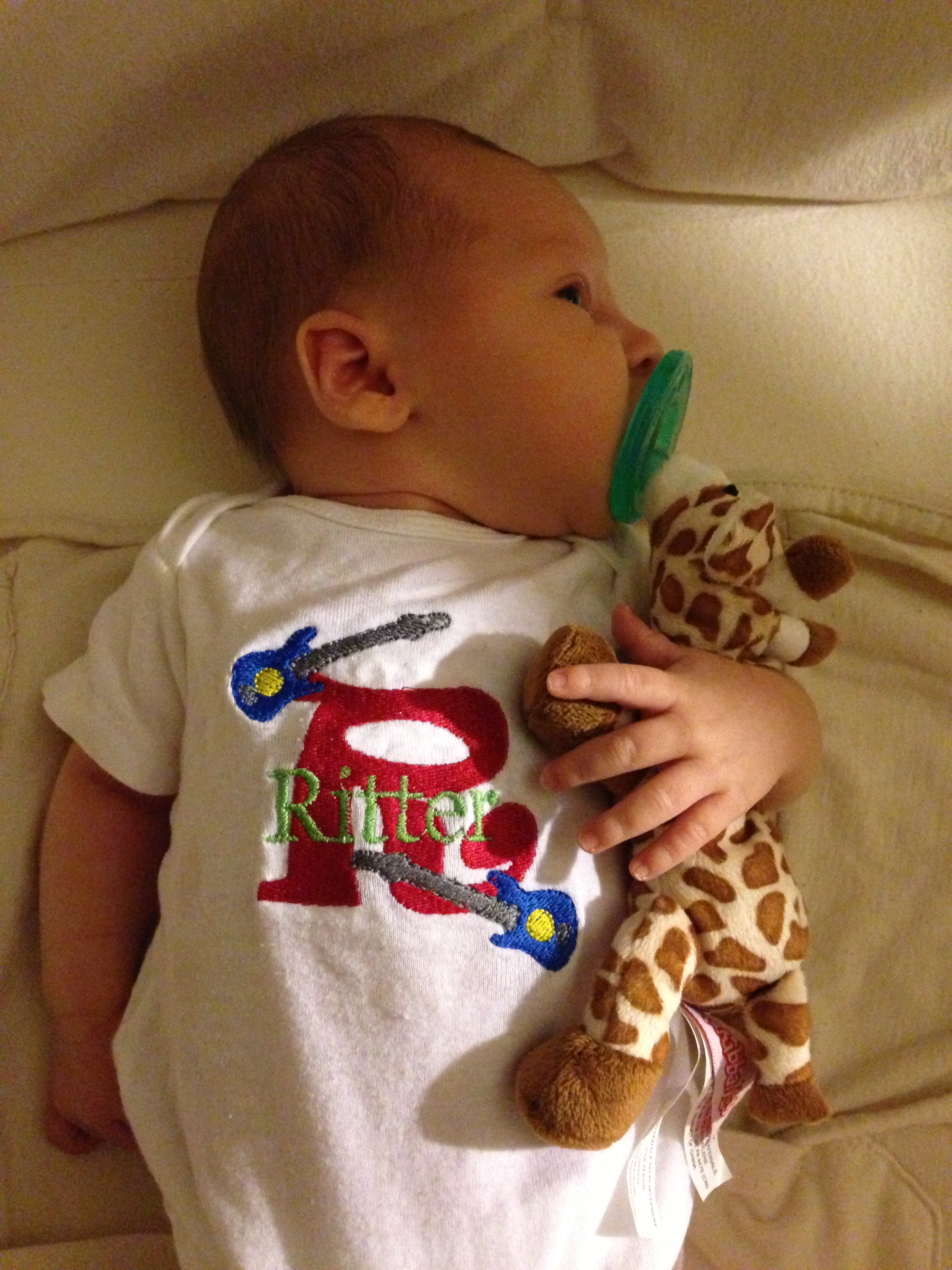 Ritter is doing beautifully.  He eats like a champ and burps like a grown man!  He’s already taking 4 ounces at each feeding (every 3 hours).  He is on a combination of formula and breast milk.  Breastfeeding didn’t work out for me (I’ll skip the part about being an emotional basketcase over this) but I am so blessed to have amazing friends who are nursing their own babies who are donating milk to my sweet Ritter.  The pediatrician is also very happy about this because he will still be getting all the antibodies and immune boosting effects of breast milk.  This is such a gift to me, I can’t say enough how grateful I am for this.  I was blown away with how many offers I had from people willing to donate milk.  I pray that I will be able to successfully breastfeed baby number 2…but for now, I am accepting and grateful of this gift from sweet friends.