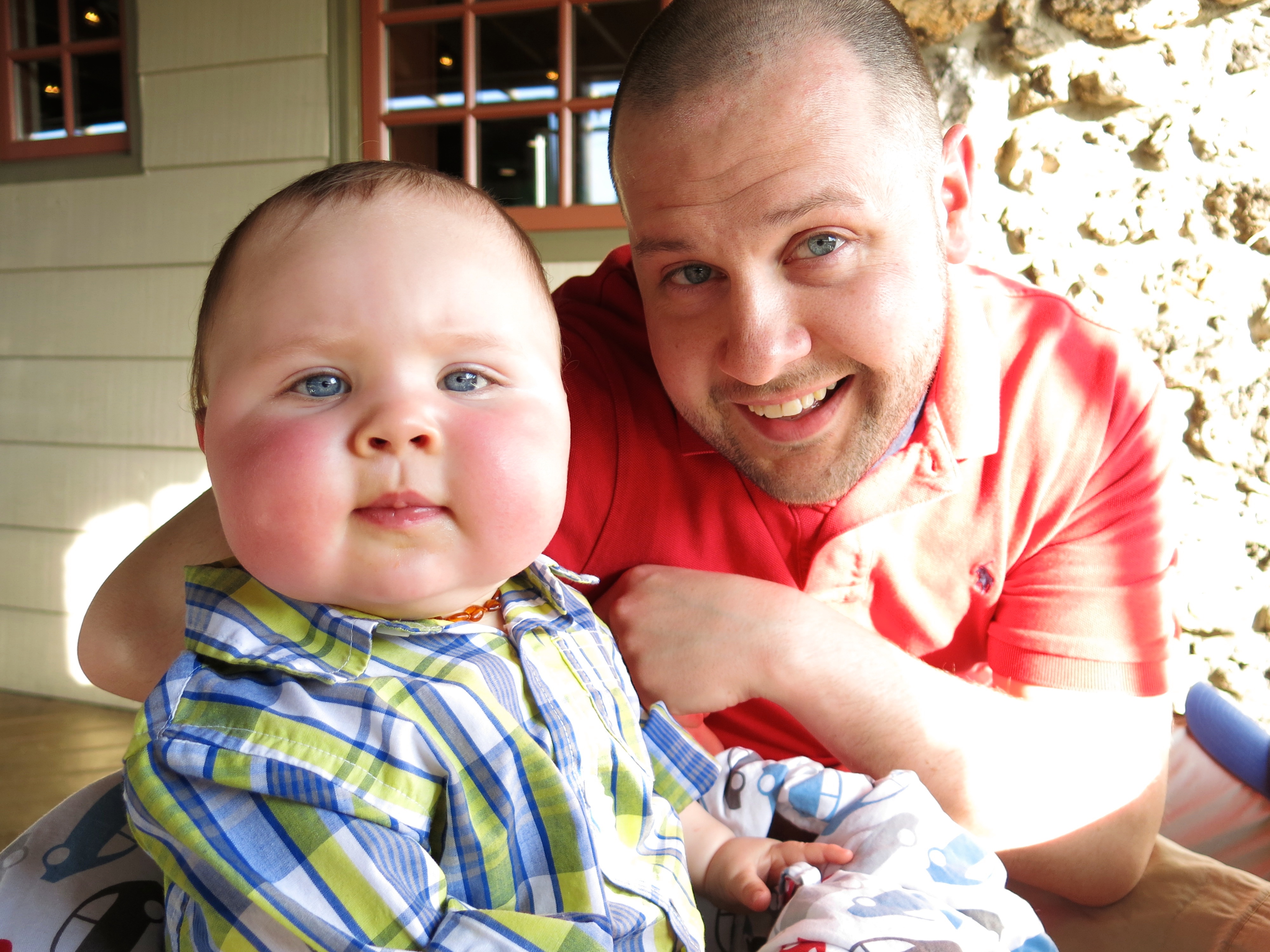 - Loves to purposefully drop things from the high chair. I don’t know if it’s watching us come and pick it up or if he likes the sound or likes watching stuff fall or what. We went out to dinner saturday night and he was playing with Eric’s hat and he kept leaning over and dropping it over and over and over for like an hour. So funny.