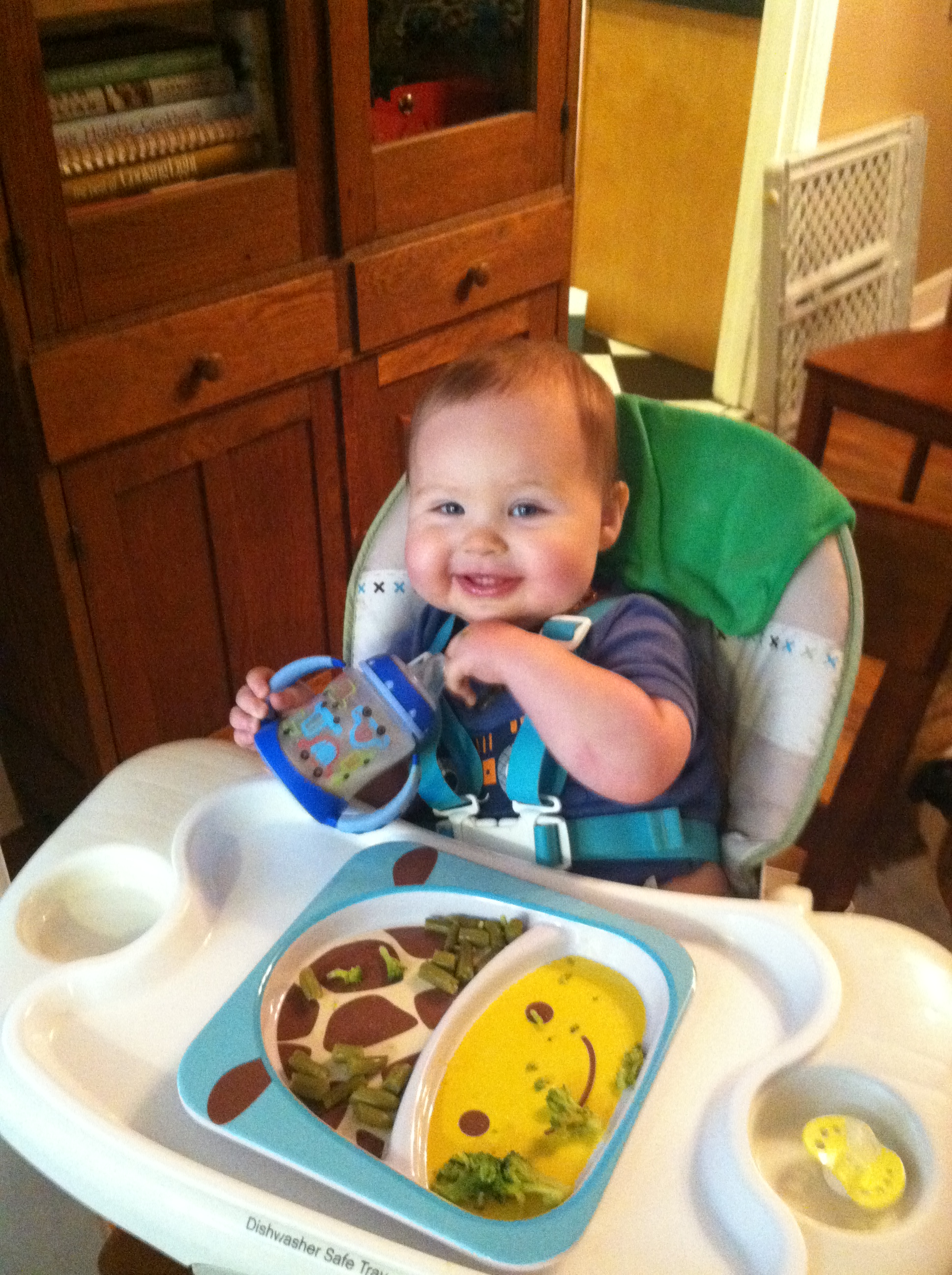 Cute new trick…he leans back on his hands, kicks his legs, and giggles hysterically!