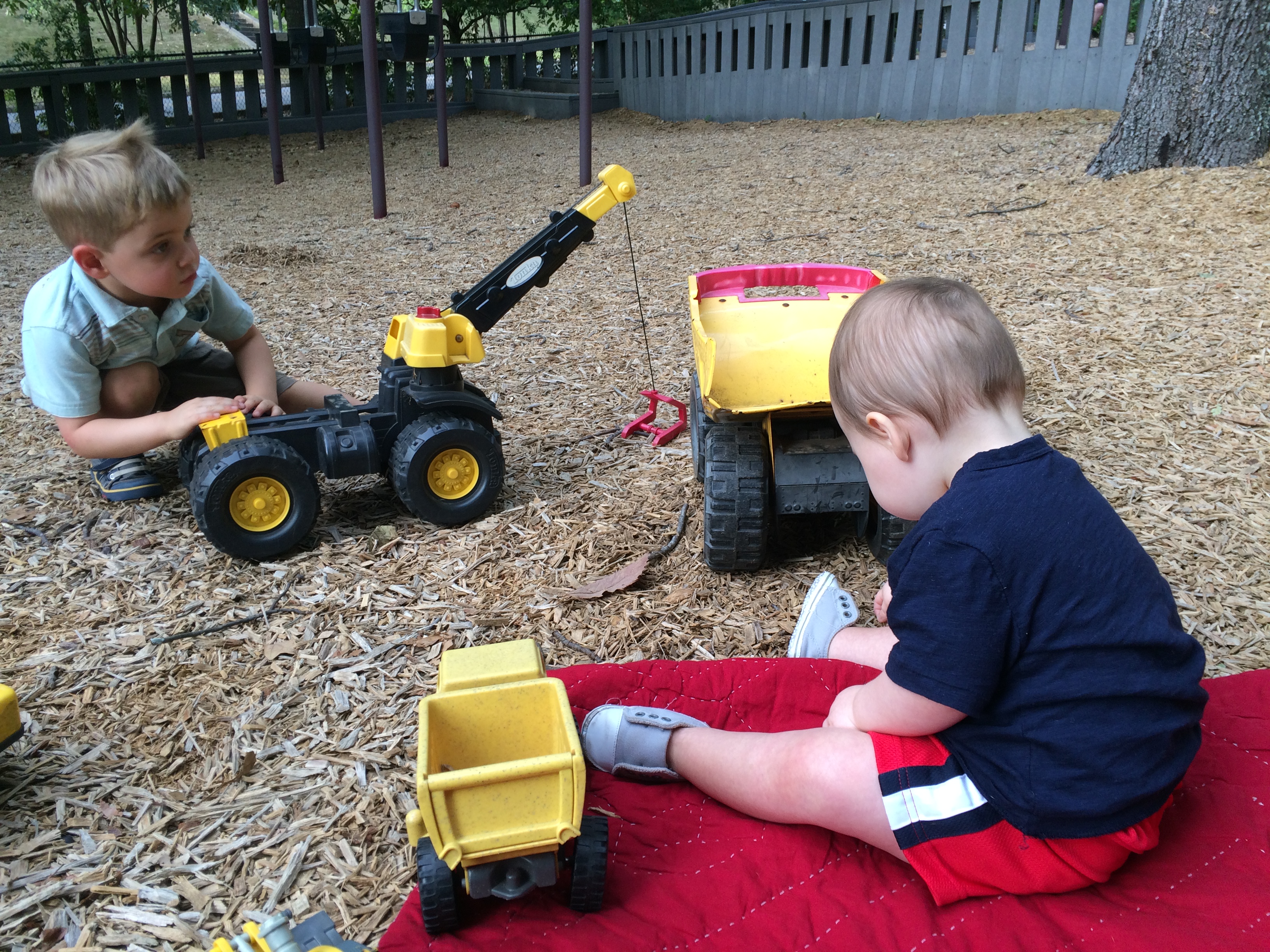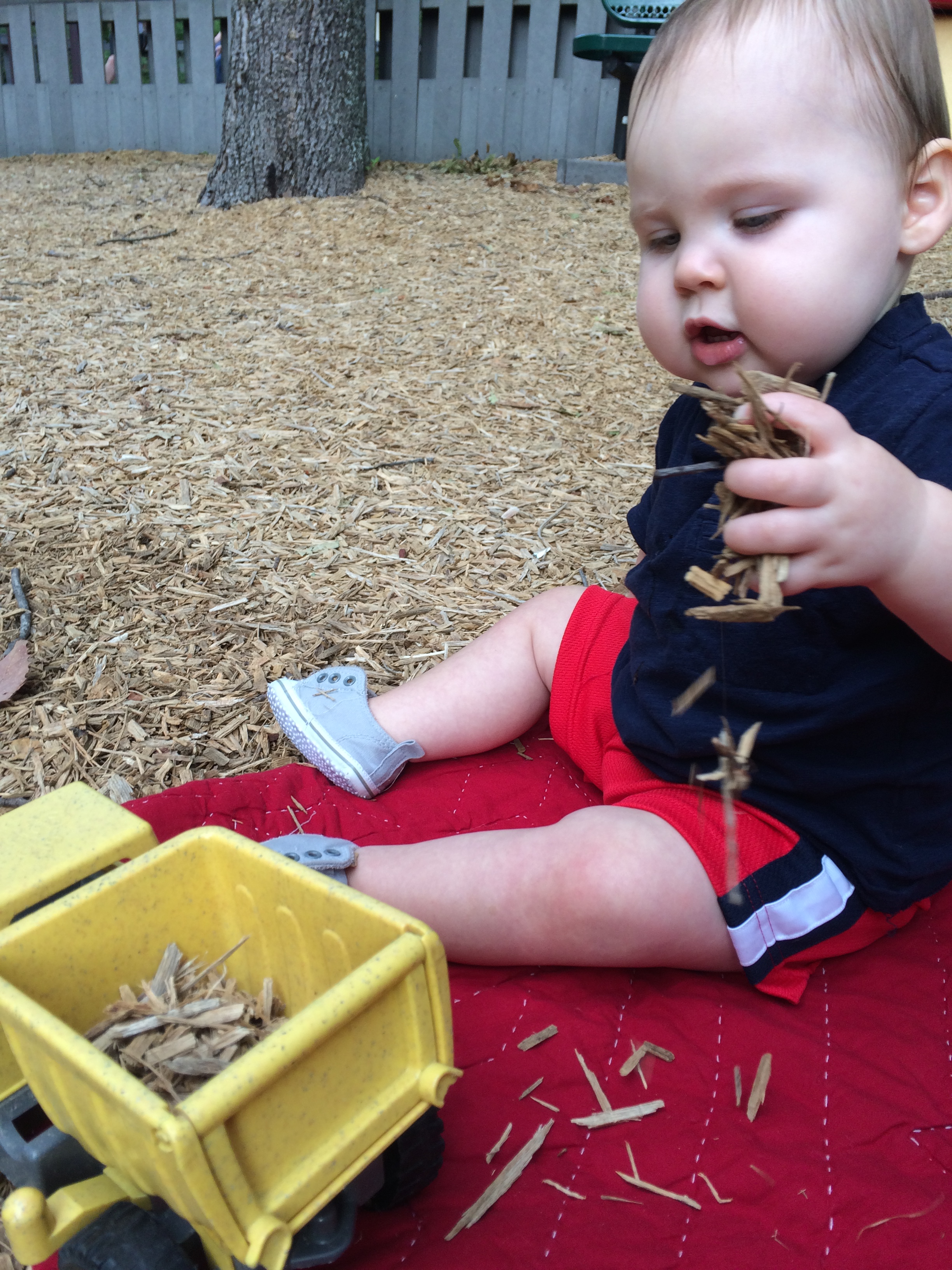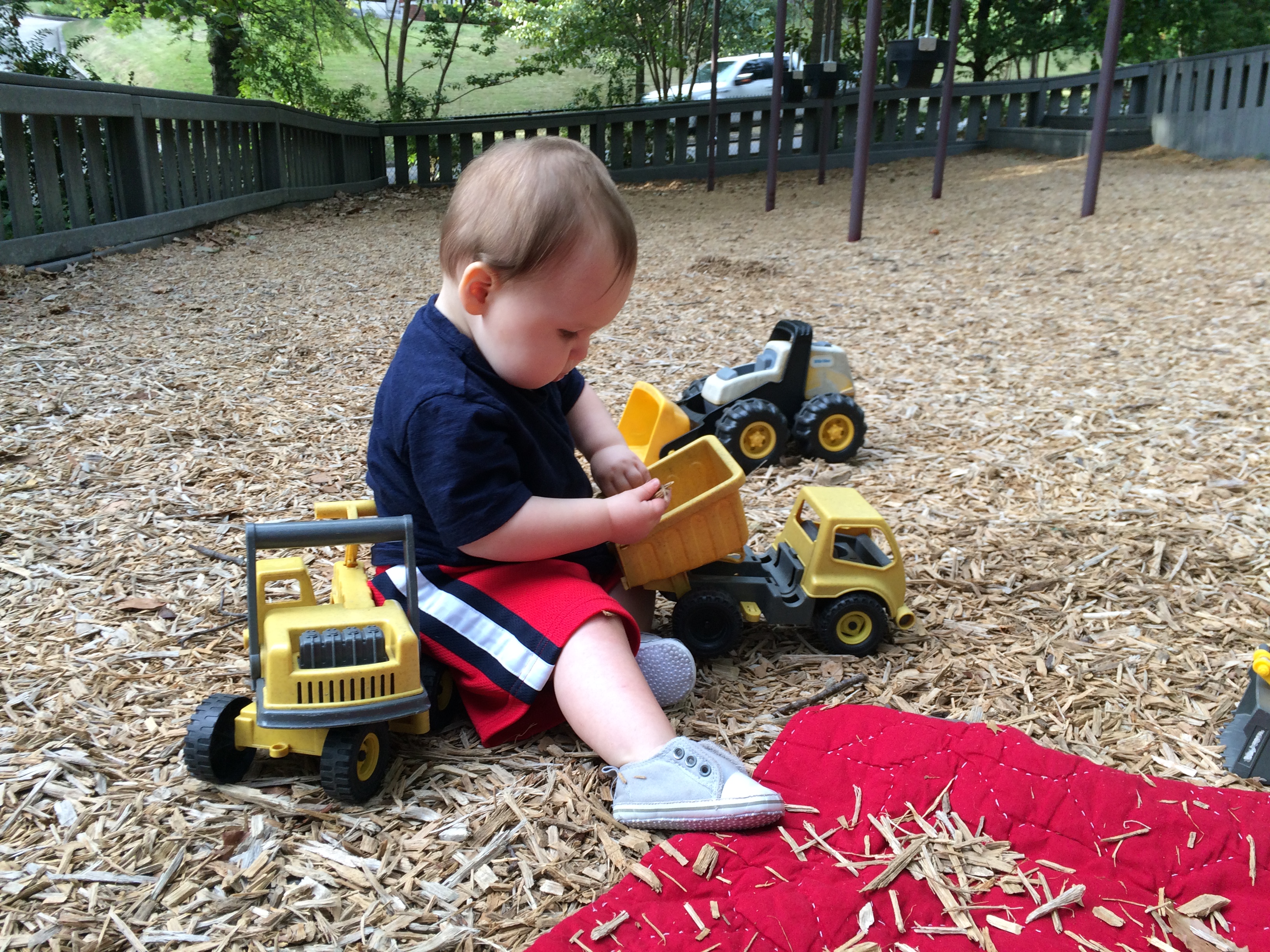 Loves the dump trucks at the park!