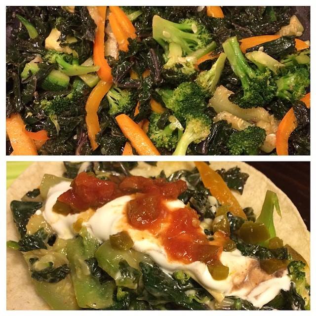 I try to balance each day with some protein, veggies, and healthy carbs. I don’t do all this in each meal – just over the course of a day. If I eat carbs for breakfast and a ton of veggies for lunch, I’ll do a protein heavy dinner. I try to get two servings of leafy greens a day – that’s not hard for me as much as I love kale, spinach, arugula, broccoli, etc.
