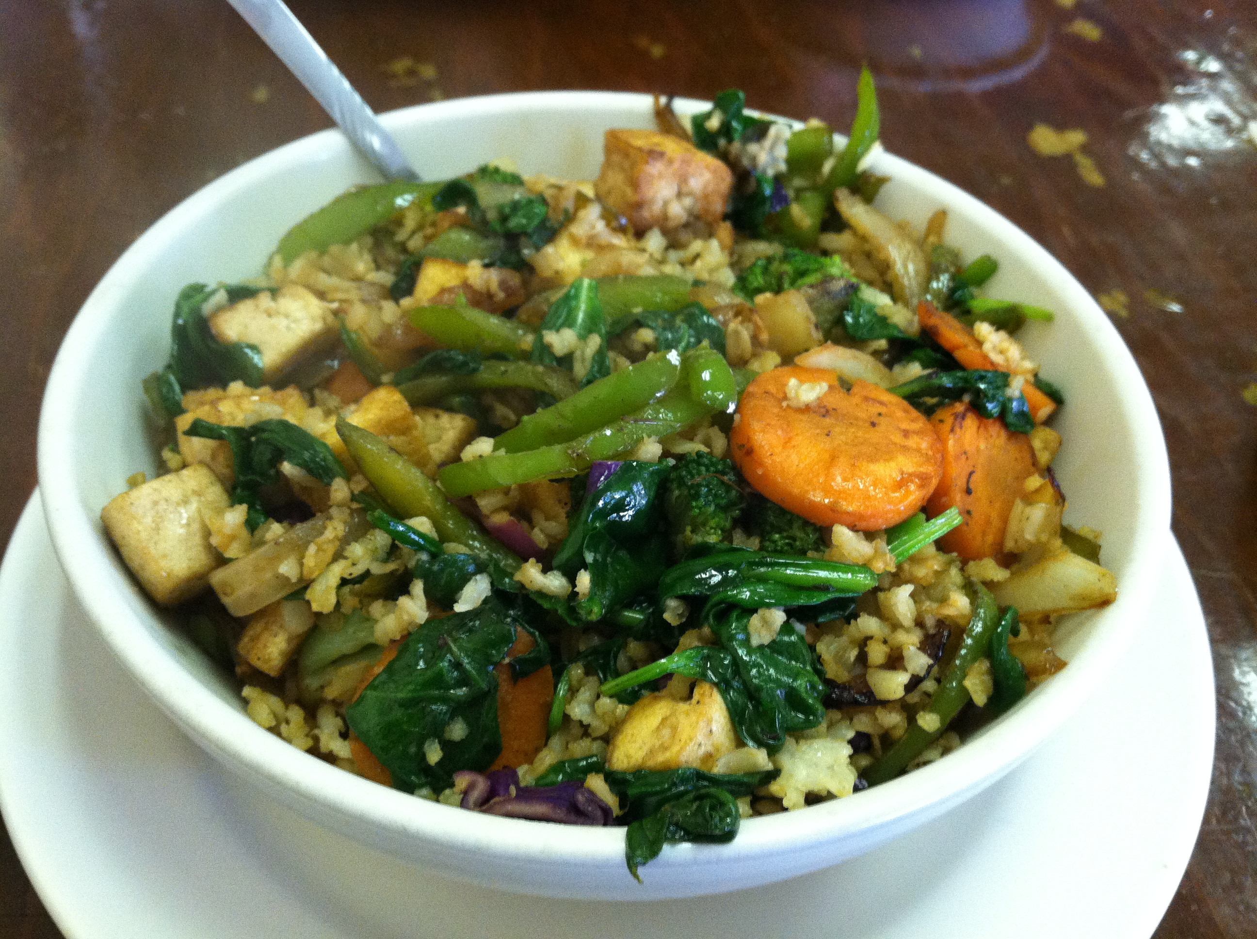 * Makarios – this is our favorite local mediterranean place. They have the most amazing grilled chicken. They also have tons of veggie sides and the best grilled veggies in town. A HUGE plate of grilled zucchini, squash, carrots, peppers, and onions is only like 3 bucks. They have awesome salads and entrees. And each entree comes with a side and you can get the grilled veggies. They make all of their sauces and dressings homemade and will tell you EXACTLY what’s in them. I’m obsessed with their tahini sauce on my salads there…it’s like this magic mediterranean creamy ranch but it has no dairy or sugar!