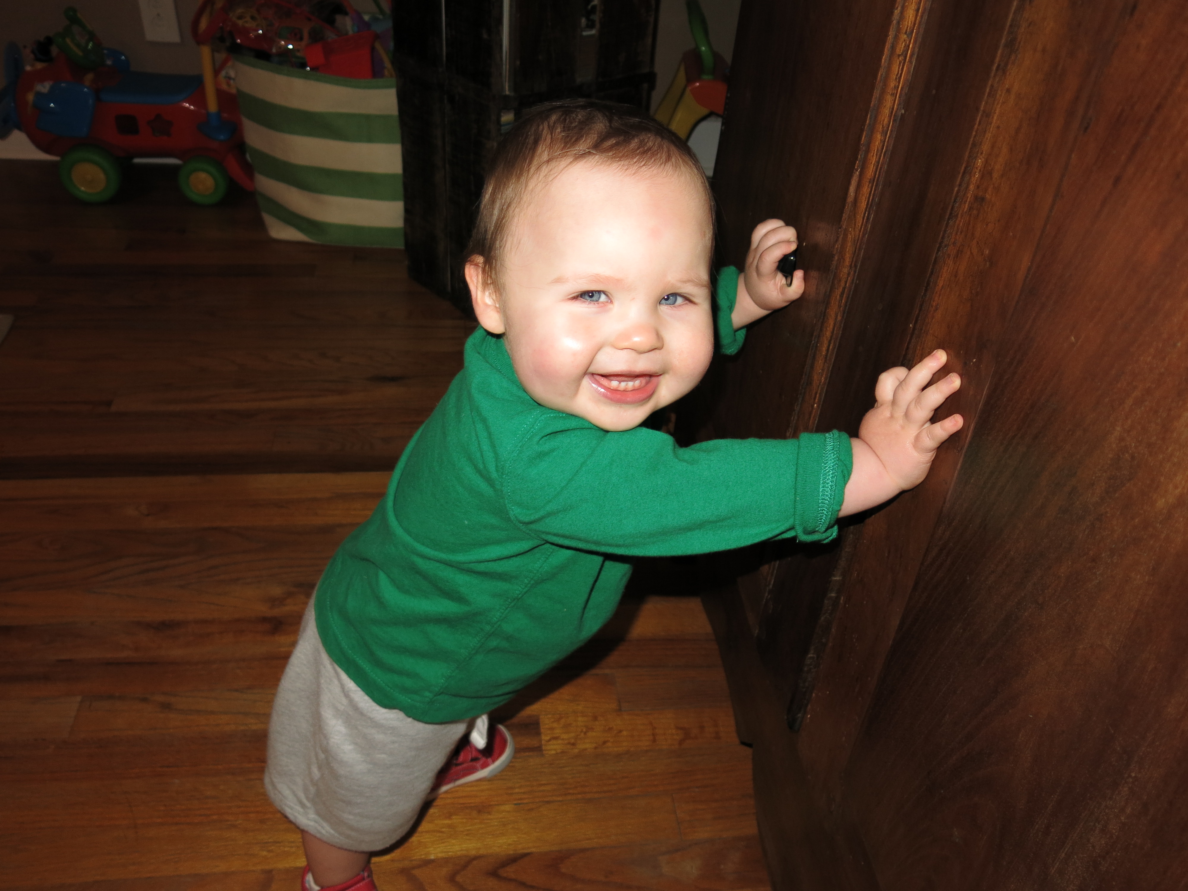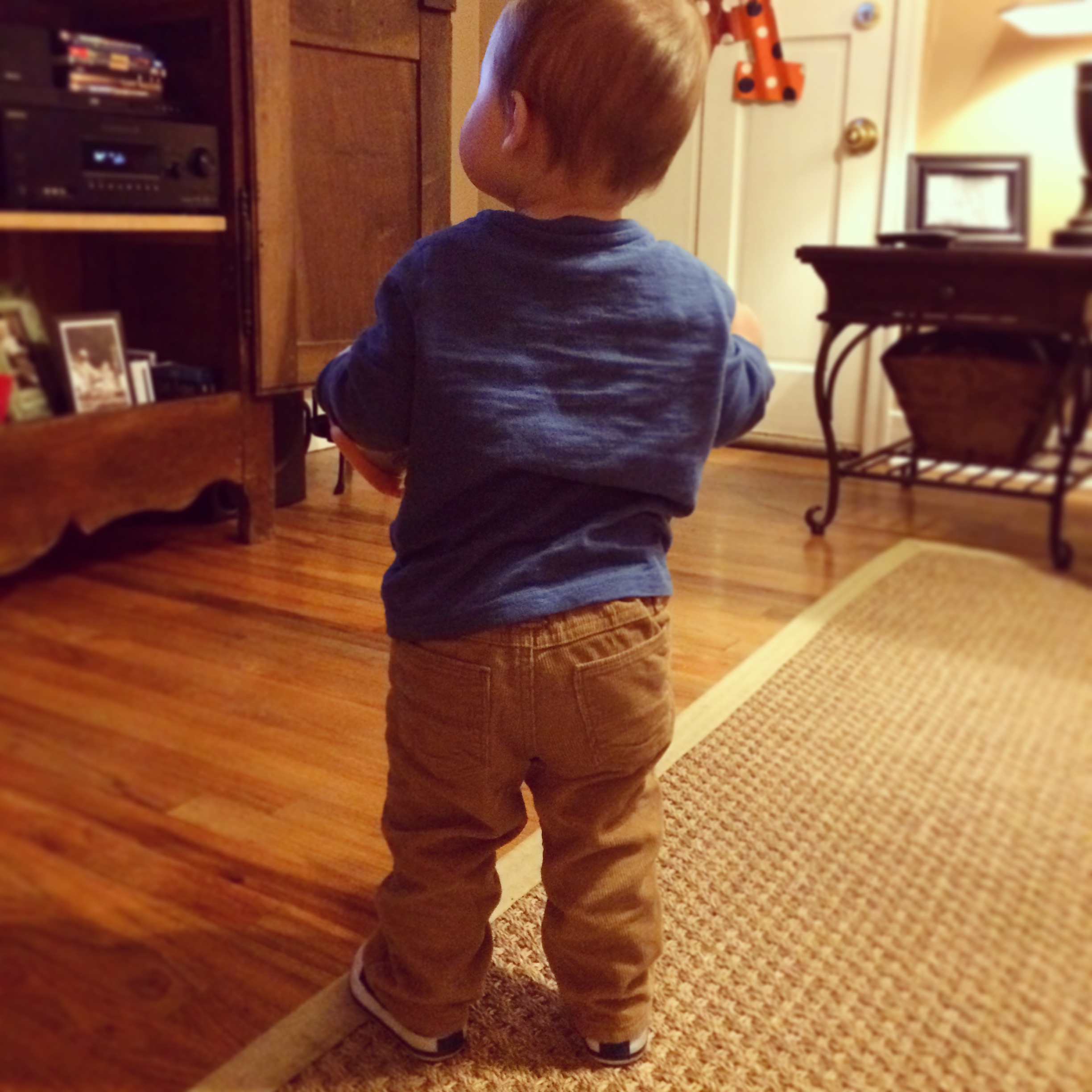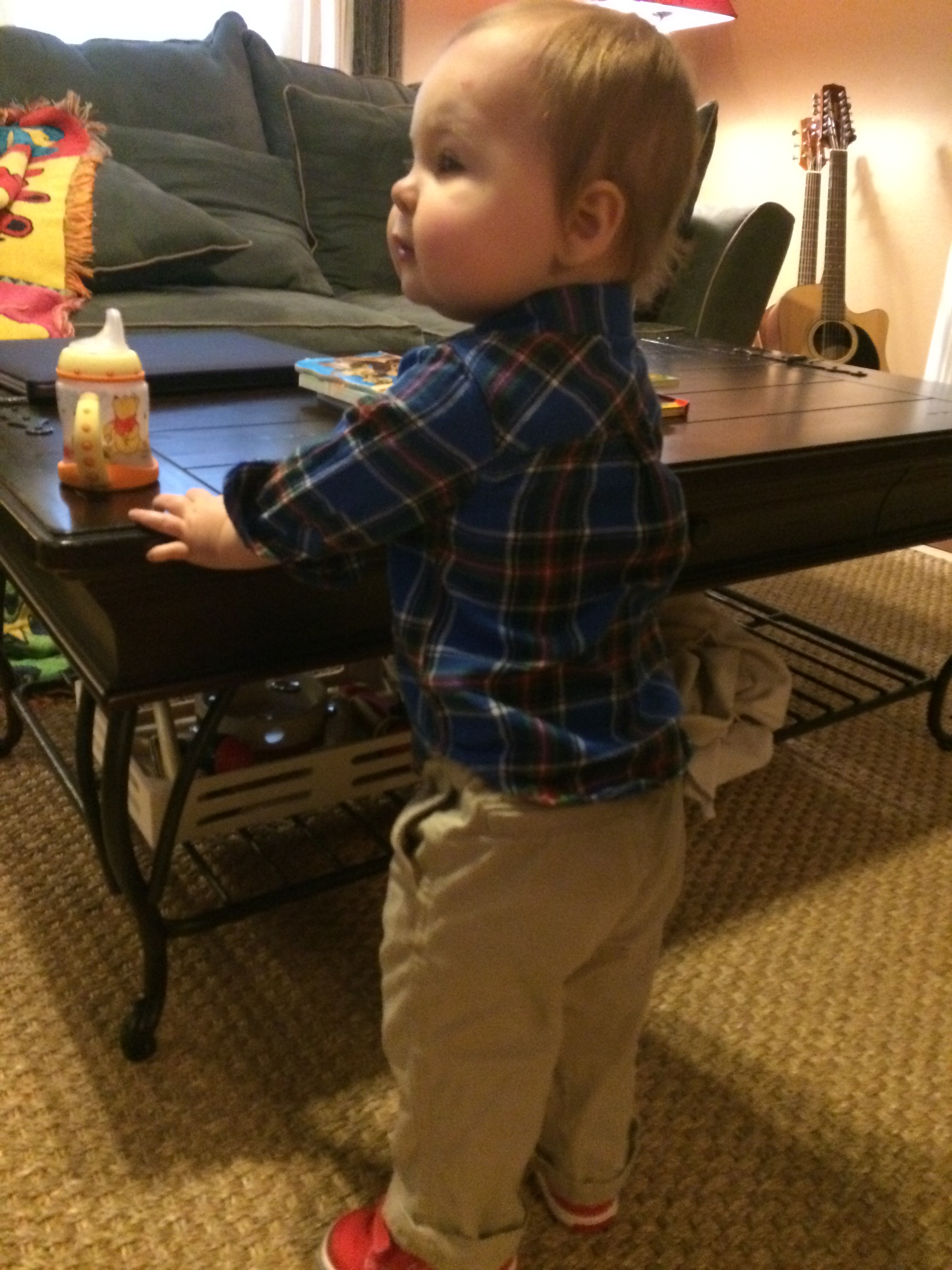 Well the wobbly walking is about over. He’s pretty much a pro nowadays. He is going so fast at times he almost breaks into a run. We had a few weeks of constant trips and falls but he’s been much more stable the last couple of weeks. Thank god because I honestly thought he was going to end up with a concussion because he was falling so much. He also FINALLY learned how to stand from sitting. You would think he would’ve gotten this down before walking but no. Up until just this past week if he was sitting on the floor he would crawl over the a piece of furniture and pull up to stand, rather than just standing up where he was. He has finally figured out how to stand from sitting.