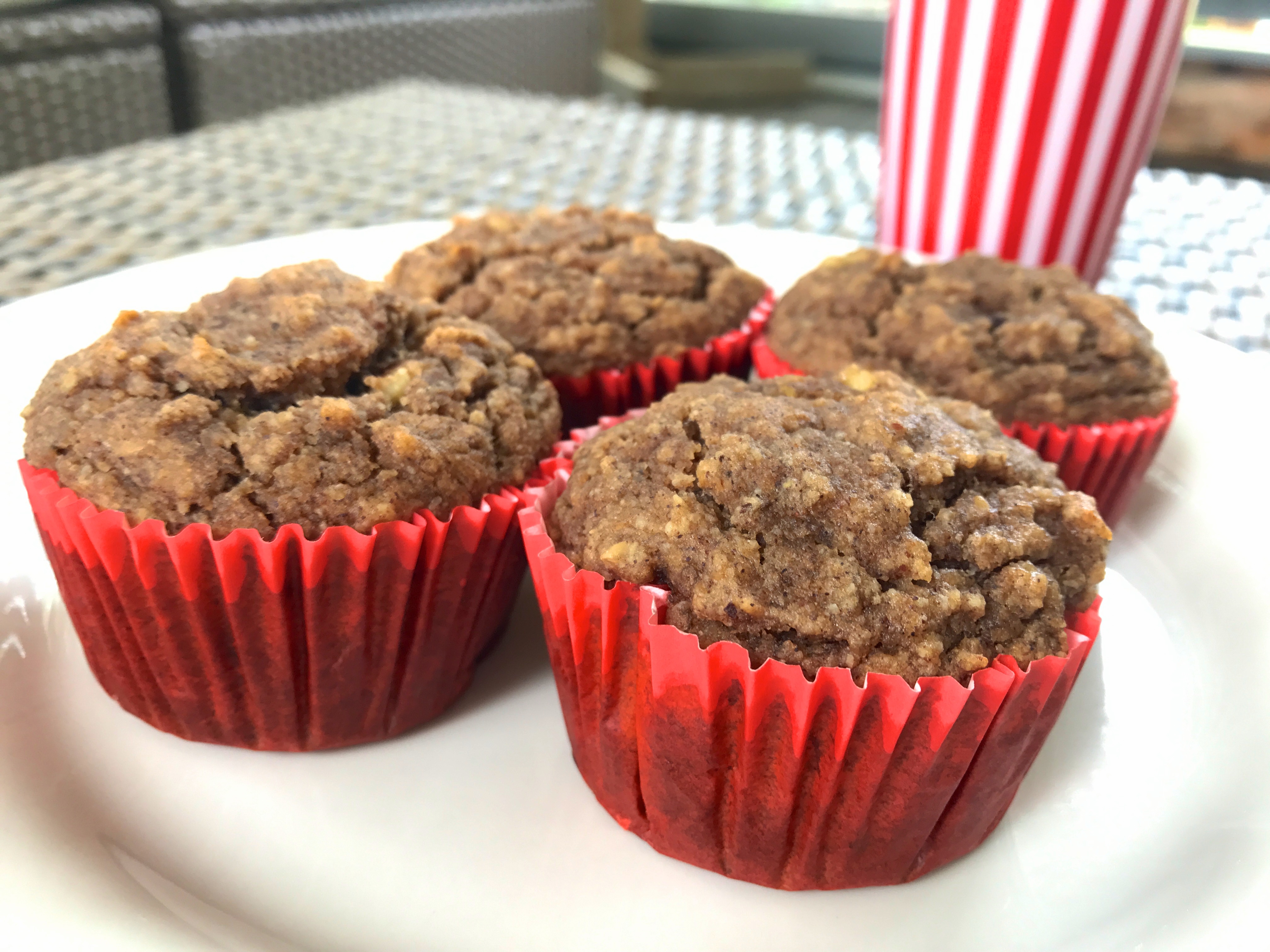 These are SO SO good! I adapted a recipe I found online. I added coconut flour for added fiber, increased the bananas for more natural sweetness and flavor, and reduced the sugar a bit by reducing the agave and using a tablespoon of veggie glycerin. They are super moist, not at all crumbly, and hold together very well. My dad said it’s the best banana bread he’s ever had! I’ll take it!