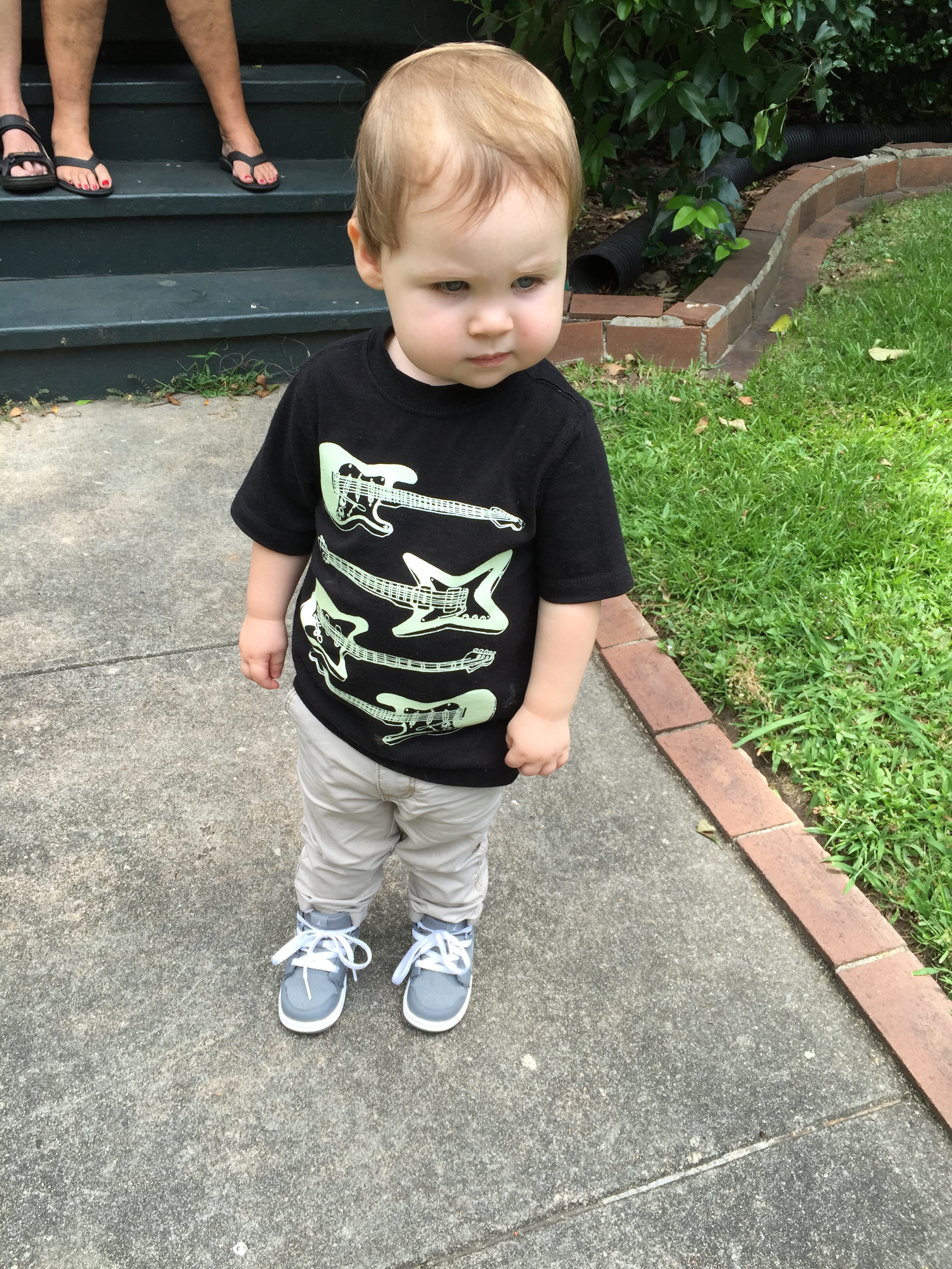 – Big growth spurt over the last couple of months…went straight from 12-18 months to 18-24 months and now solidly in mostly 2T clothes…all in just 2 months. We go for his 2 year check up this friday but as of our last sick visit he was 33.5 inches tall and 29 pounds.