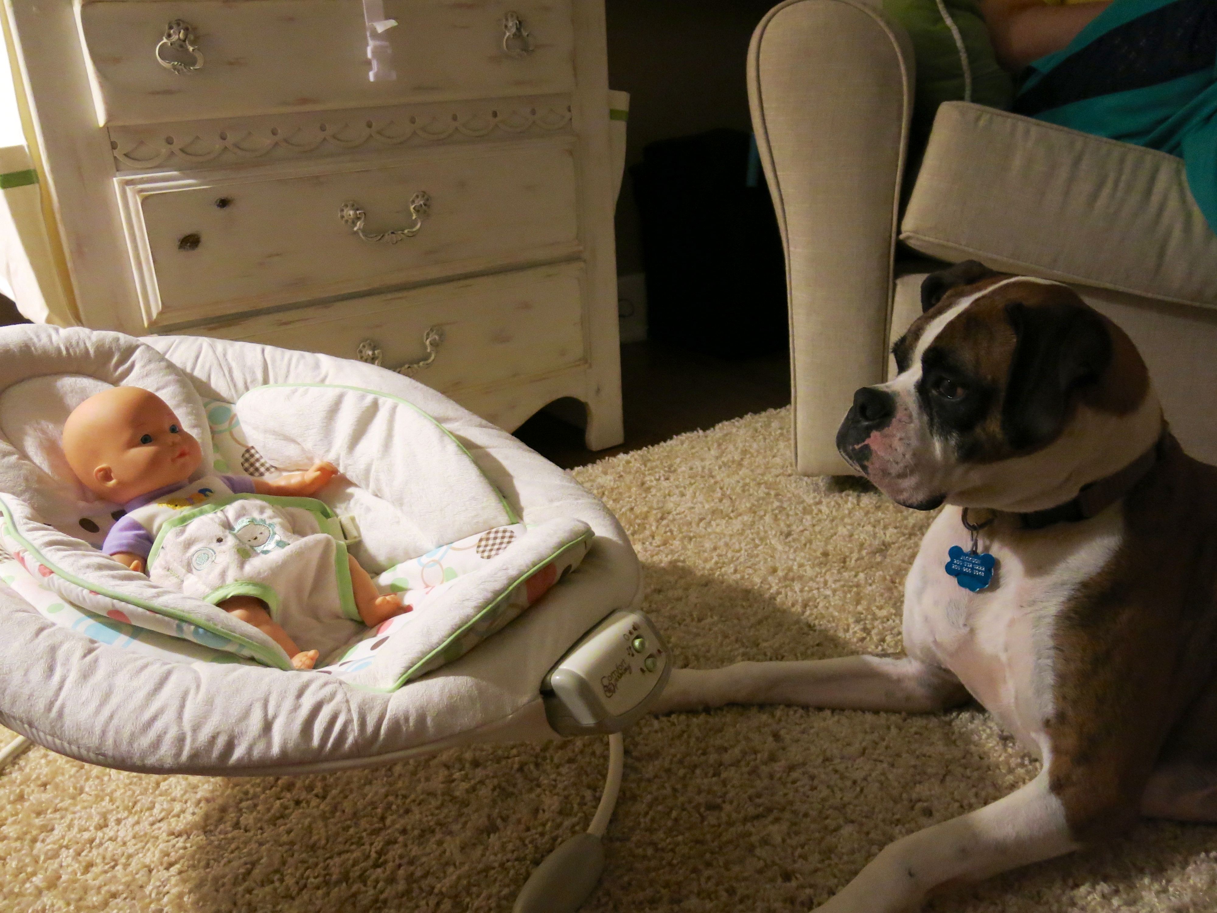 So..do y’all remember that baby doll we got when I was pregnant to use to get Jackson familiar with the concept of having a baby in the house? If you don’t, here’s the story… Eric got a cheap baby doll at Walmart and for weeks leading up to Ritter’s arrival we carried it around, wrapped it in a blanket, put it in the bouncy seat, etc. Jackson was so freaked out. He didn’t know what this little thing was that we were suddenly so concerned about. He stared at that damn doll for hours….