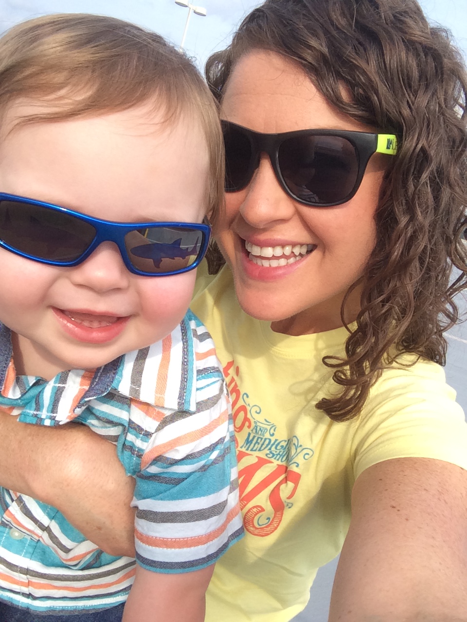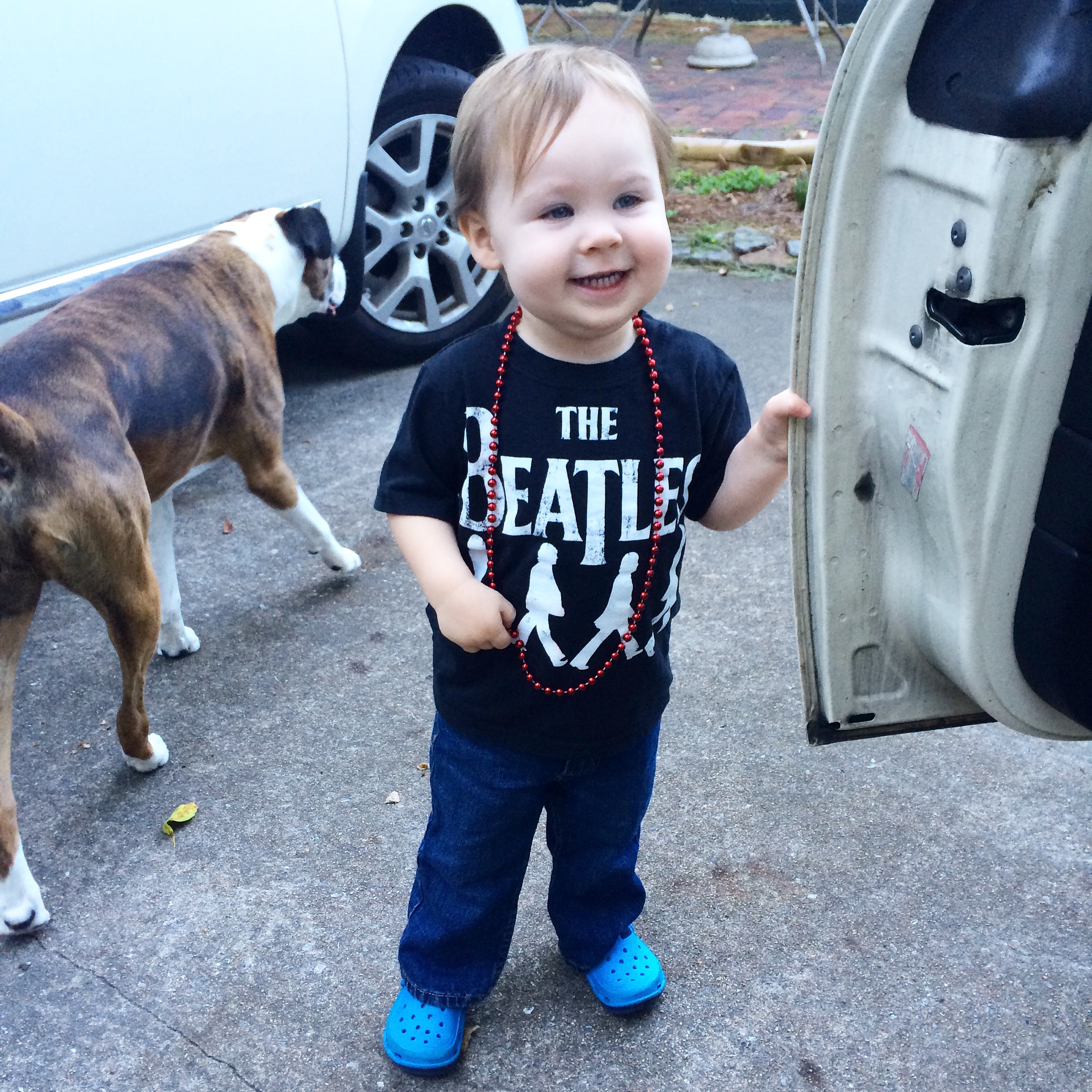 He also continues his love affair with accessories. Sunglasses, hats, shoes, and, most recently, necklaces. There’s a “treasure chest” in his classroom and he often gets to pick out a toy for being “best napper” or “best leader” or something like that. He always picks a necklace. They are just beads…like mardi gras beads. It seriously looks like it’s mardi gras around here this kid has so many beads. And his newest obsession is trying to wear all of our shoes…even my heels. It’s so entertaining. He HAS to put them on by himself no matter how long it takes.