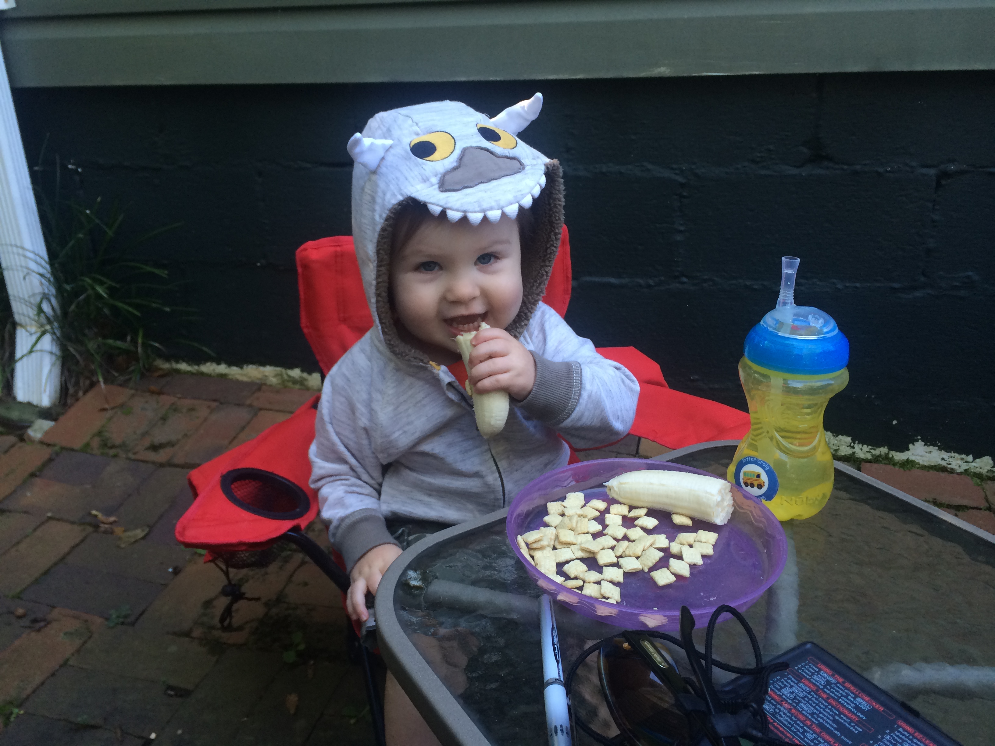 He also plays “office.” I guess this comes from knowing that we go to work each day. He used to ask us where we work and we would say “an office.” So now he’ll pack up this little bag he has with all sorts of things and will proclaim “I’m going to the office.” Then he’ll run out of the room and come back and say “I’m home from work!” He’ll talk and talk to himself…”I need my computer..I need my watch… where’s my wallet…” It’s SO FREAKING HILARIOUS!!!! He also needs to “charge” everything. I am sure this comes from seeing us charge our phones and computers and iPads. He has a charger that he carries around and “hooks up” to all of this things and says they are charging.