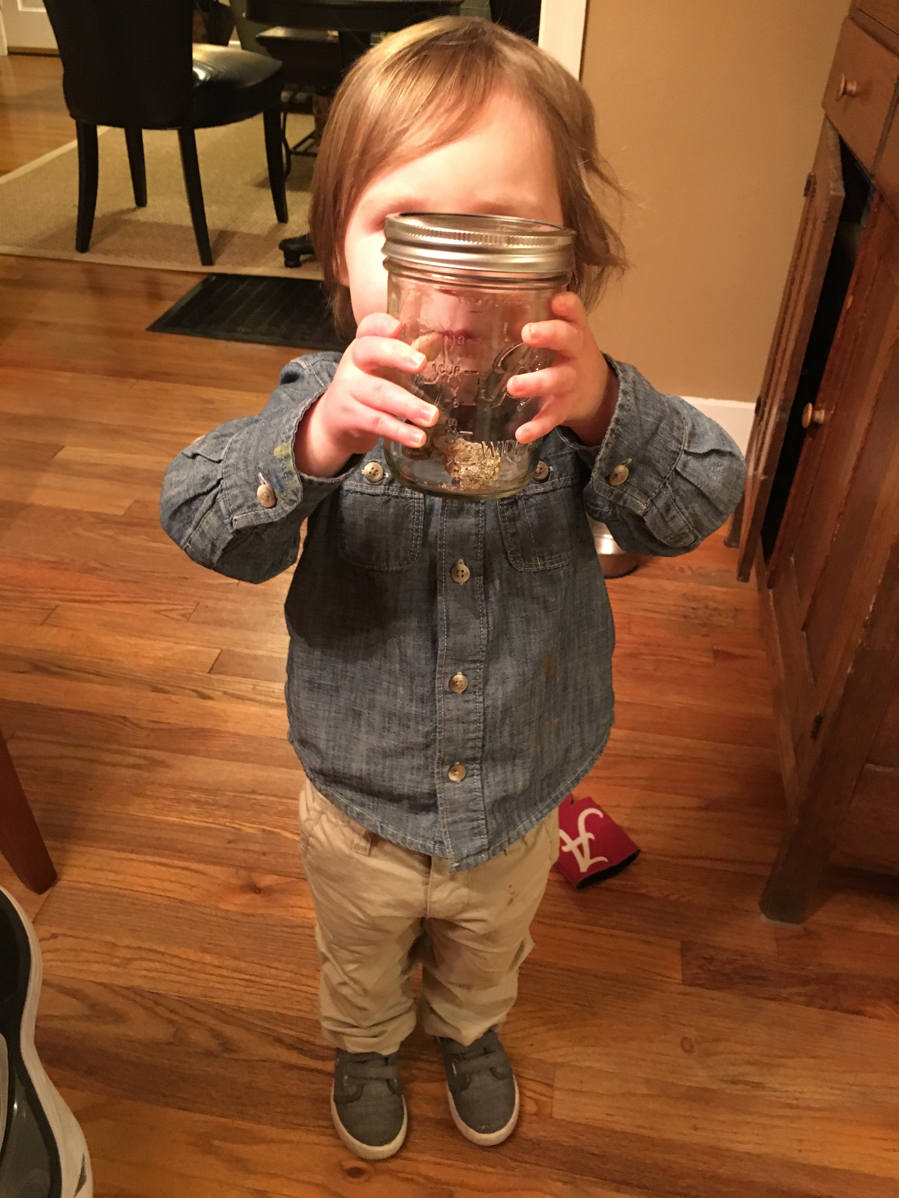 Ritter started a rock collection. He was always picking up rocks everywhere we went so we started a jar for them. The jar is now almost full! –